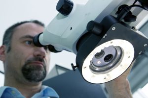 Intuitiv bedienbar. 24. Mai 2022 Ob in der automatisierten Qualitätskontrolle oder überall dort, wo manuelle Präzisionsarbeit unter dem Mikroskop gefordert ist: Das LED-High-Power-Ringlicht von Photonic fügt sich nahtlos in den Workflow ein. Wer Präzisionsarbeiten unter dem Mikroskop durchführt, muss sich voll auf diese Aufgabe konzentrieren. Bei herkömmlichen Ringlichtern ist das oft schwierig, weil man zum Finden der separaten Steuerungseinheit die Augen vom Mikroskop nehmen und den Blick weg vom Objekt richten muss. Der Beleuchtungsspezialist Photonic hat deshalb ein LED-High-Power-Ringlicht (HPRL) mit integrierter Steuerung für den Industrie- und Life-Science Bereich entwickelt. „Bei unserem LED-High-Power-Ringlicht ist durch die Position der Druck-/ Drehregler ein einfaches Umgreifen von der Fokus-/Zoomsteuerung des Mikroskops zum Ringlicht möglich“, erläutert Mark Gorecki-Schwarz, der in der Elektronikentwicklung der Photonic tätig ist. „Durch die direkte Bedienung an der Lichtquelle können die Helligkeit sowie die Beleuchtungsrichtung intuitiv angepasst werden. Verändert man während der Arbeit eine Einstellung, kann mithilfe eines einfachen Knopfdrucks eine zuvor eingespeicherte Konfiguration sofort wieder abgerufen werden“, so Gorecki-Schwarz. Zusätzlich sorgt neueste LED-Technologie kombiniert mit einer Mehrzweckoptik für unübertroffene Helligkeit und eine homogene Ausleuchtung. IDEAL FÜR DIE AUTOMATISIERTE QUALITÄTSKONTROLLE In der Qualitätskontrolle hat sich das LED-High-Power-Ringlicht von Photonic bereits etabliert. „Durch den USB-Anschluss kann unser System problemlos in einen Industrie 4.0-Arbeitsplatz integriert werden. Speziell in der automatisierten Qualitätskontrolle ermöglicht diese Remote-Variante ein rasches Durchwechseln verschiedener vordefinierter Beleuchtungsszenarien, um unterschiedliche Eigenschaften des Prüflings hervorzuheben“, betont Photonic Vertriebsleiterin Annette Stampfer. Das HPRL mit USB-Anschluss ist das jüngste Mitglied der Photonic LED-Produktlinie zur direkten Objektbeleuchtung in der Stereomikroskopie. Ergänzt wird es von weiteren Ringlichtern für die Mikroskopie. Zusätzlich bietet der Beleuchtungsspezialist faseroptische Lichtquellen an und arbeitet mit namhaften Mikroskopie-Herstellern an der Weiterentwicklung intelligenter Beleuchtungssysteme.